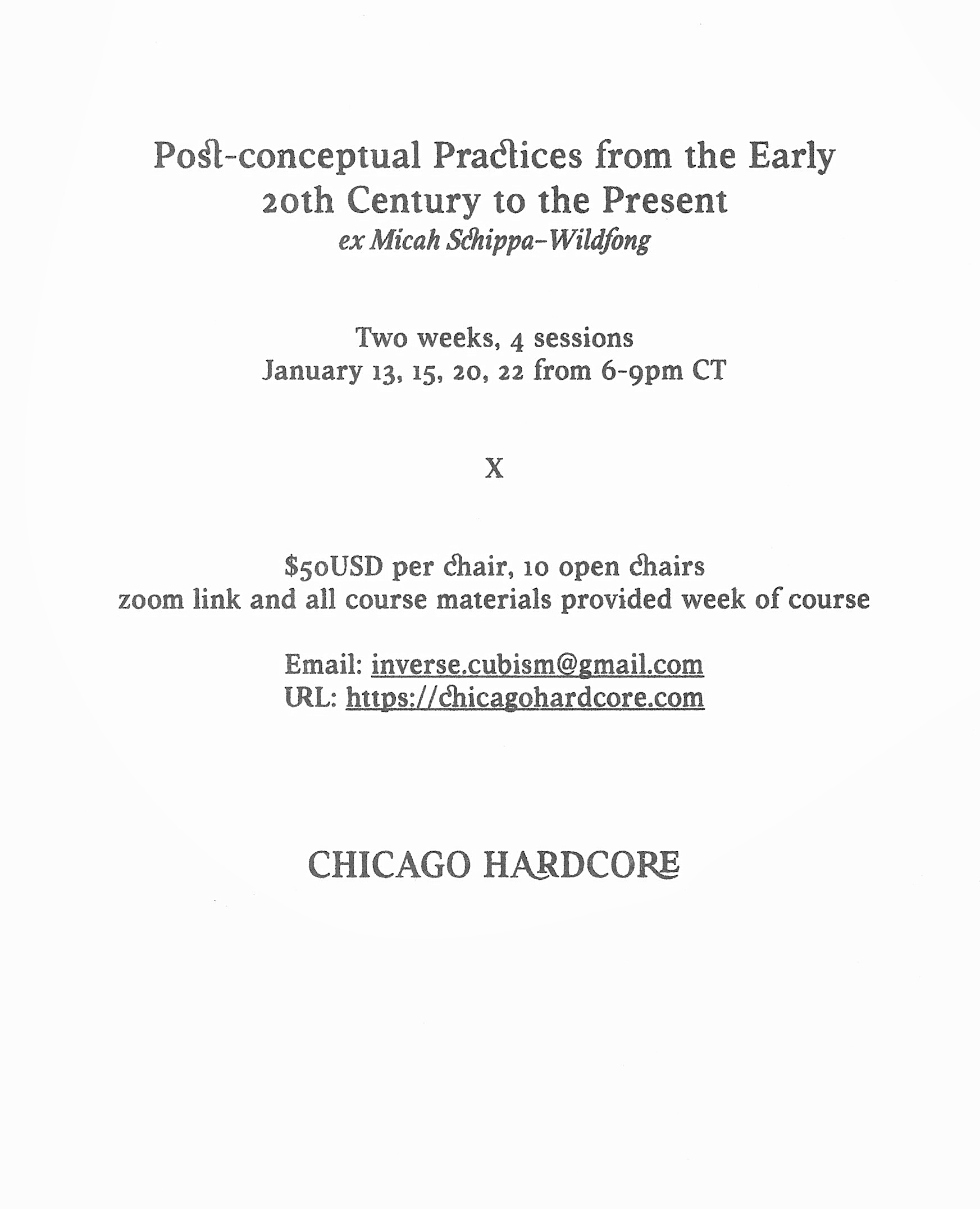 ,,CHICAGO HARDCORE,, née Oyster Club, is a nonlinear critical platform to underscore art & ideas worth being looked at.